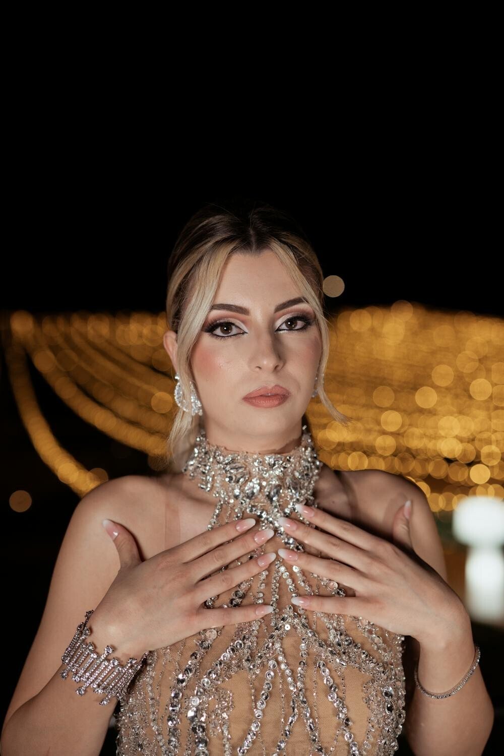 This timeless beauty is adorned with sparkling diamonds that catch the light with every movement. Perfect for adding a touch of elegance to any outfit.