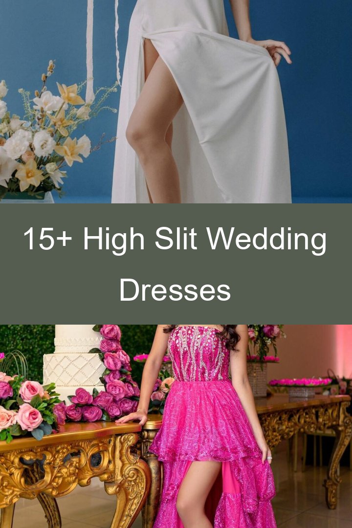 16 Featured High Slit Wedding Dresses promise to captivate your guests with their stunning designs and bold elegance that will make your special day unforgettable.
