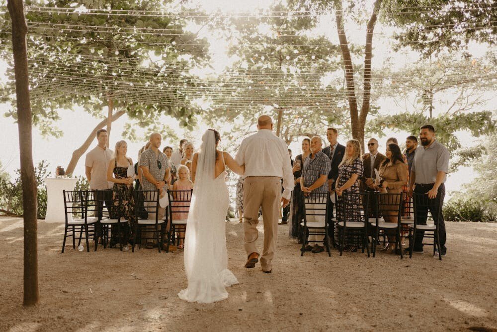 This idea is simple yet effective, offering a sturdy path for the bridal party. Planks can be decorated with flowers or lights for added appeal.