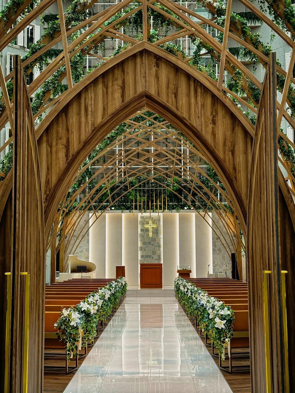 A floral carpet is a stunning option that brings the garden to your feet. Flowers lined up along the aisle create a magical path of colors and fragrances.