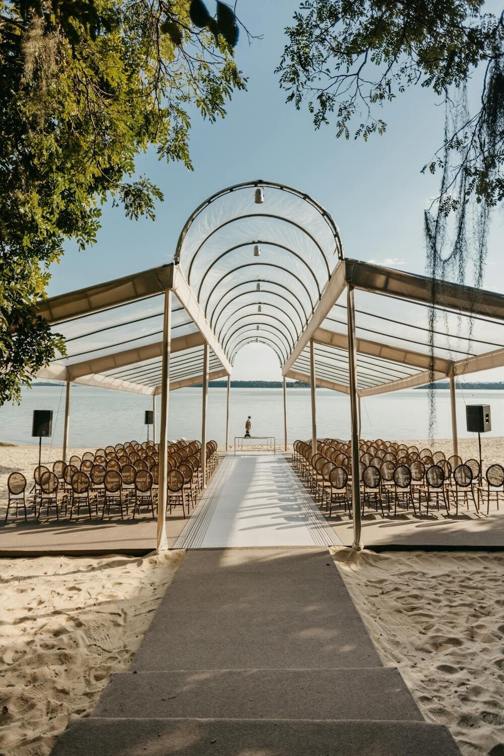 For a seaside wedding, a sandy aisle is an unbeatable choice. The texture and color of the sand complement the ocean backdrop perfectly.