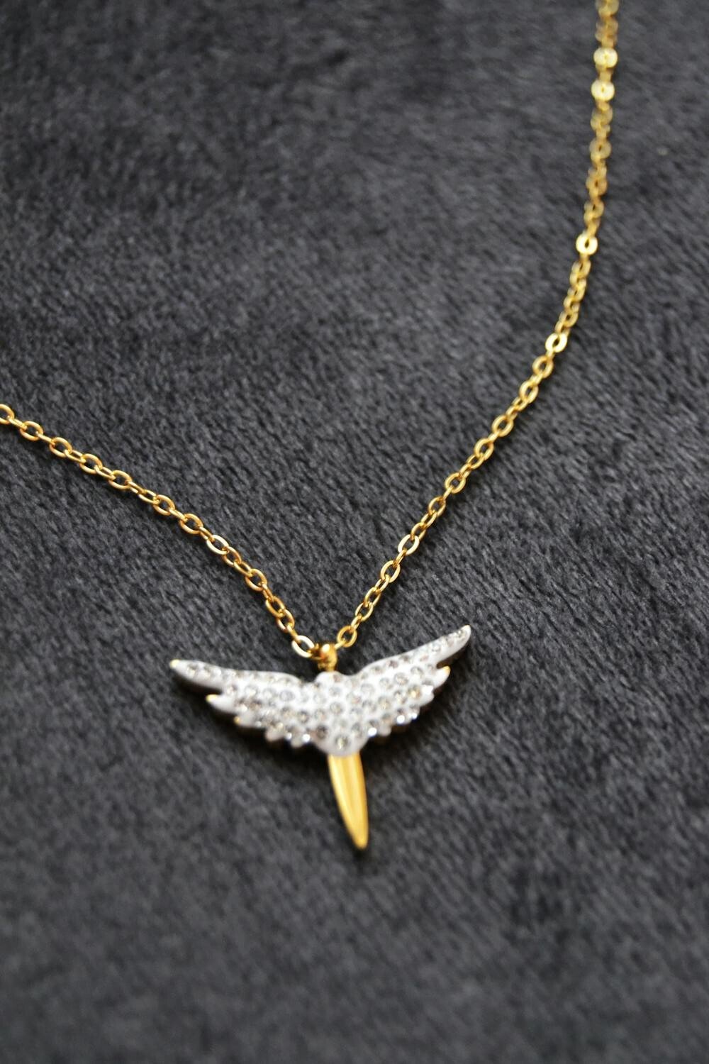 A gold angel wing pendant is both striking and symbolic. It represents freedom, protection, and guidance.