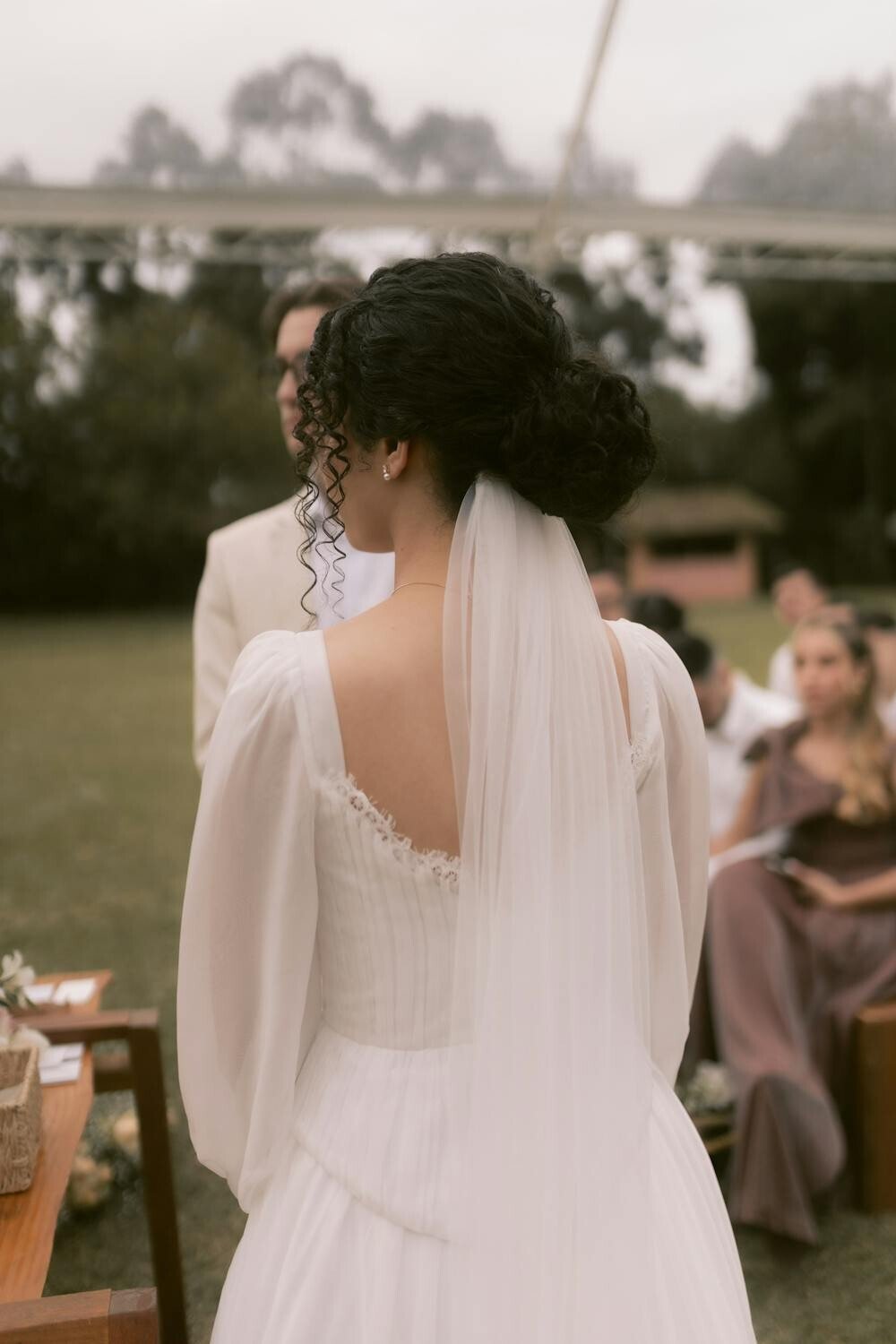 A curly bun is a playful and romantic choice. Perfect for brides with natural curls.