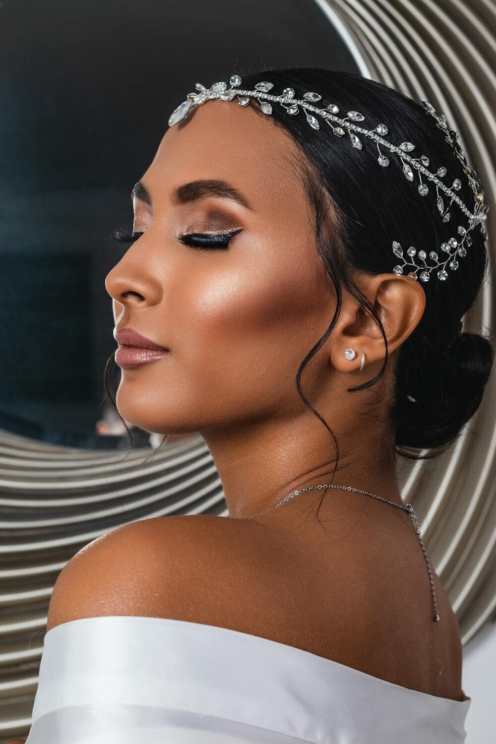 Consider adding a jeweled headband for extra sparkle. It’s a look that’s sure to wow your guests.