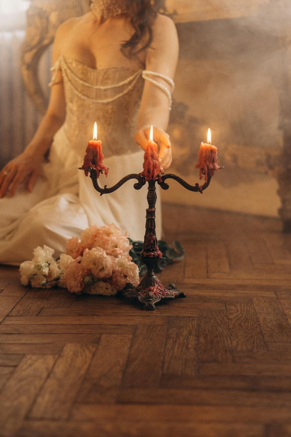 A vintage brass candlestick holder can add a touch of timeless grace. It pairs beautifully with classic and rustic wedding themes.
