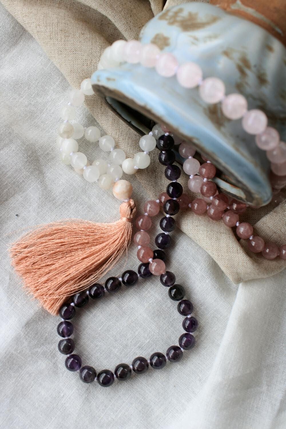 Ceramic beads in natural tones work perfectly for this style. Pair them with leather or hemp cords to complete the look.