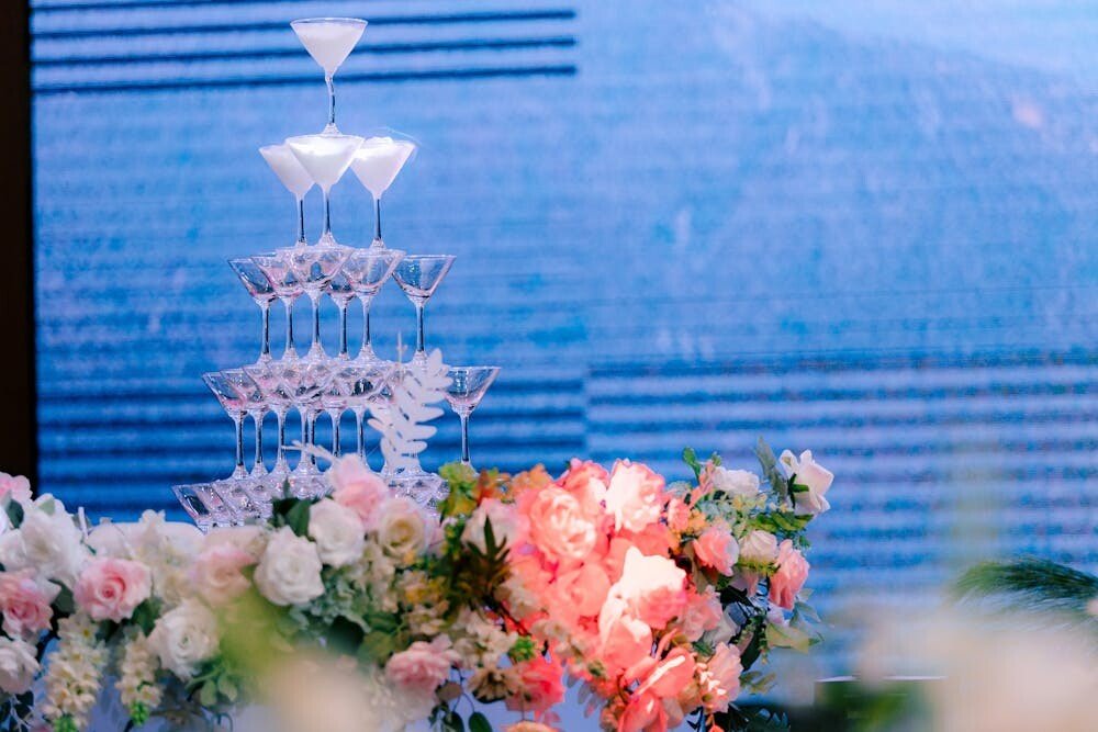 Flowers add a natural charm and beauty to any wedding setup. Incorporating floral accents into your champagne tower can enhance its appeal.