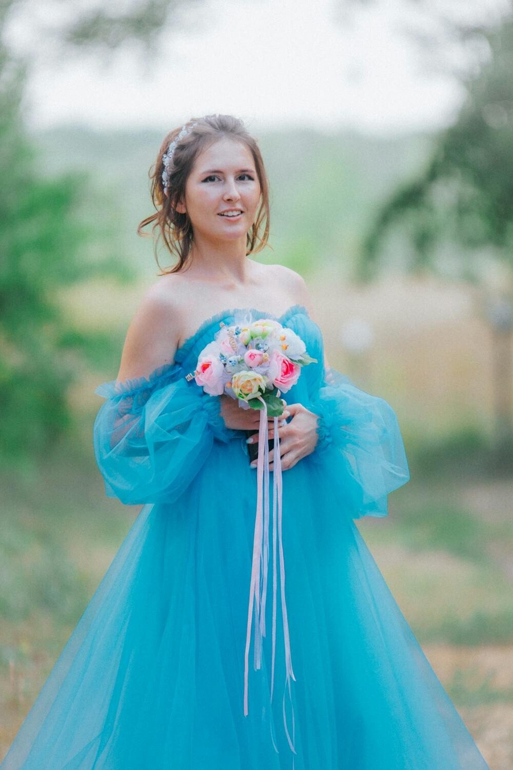 Adding small accents like pearls or ribbons makes it even more unique. With a floral crown, your chiffon gown will look even more ethereal.
