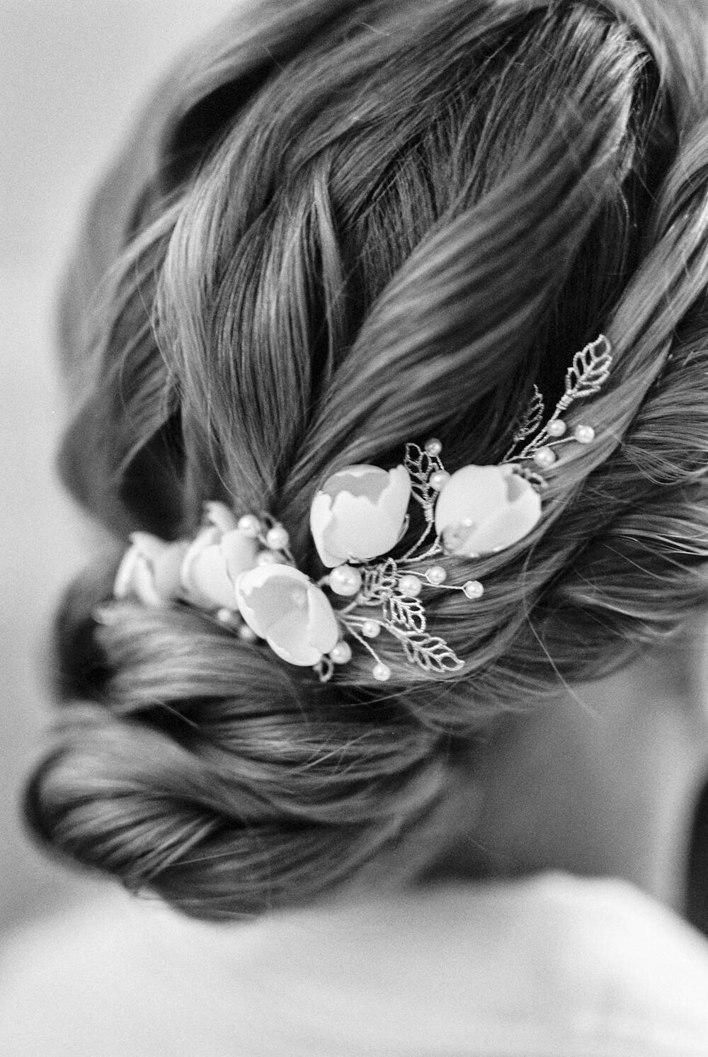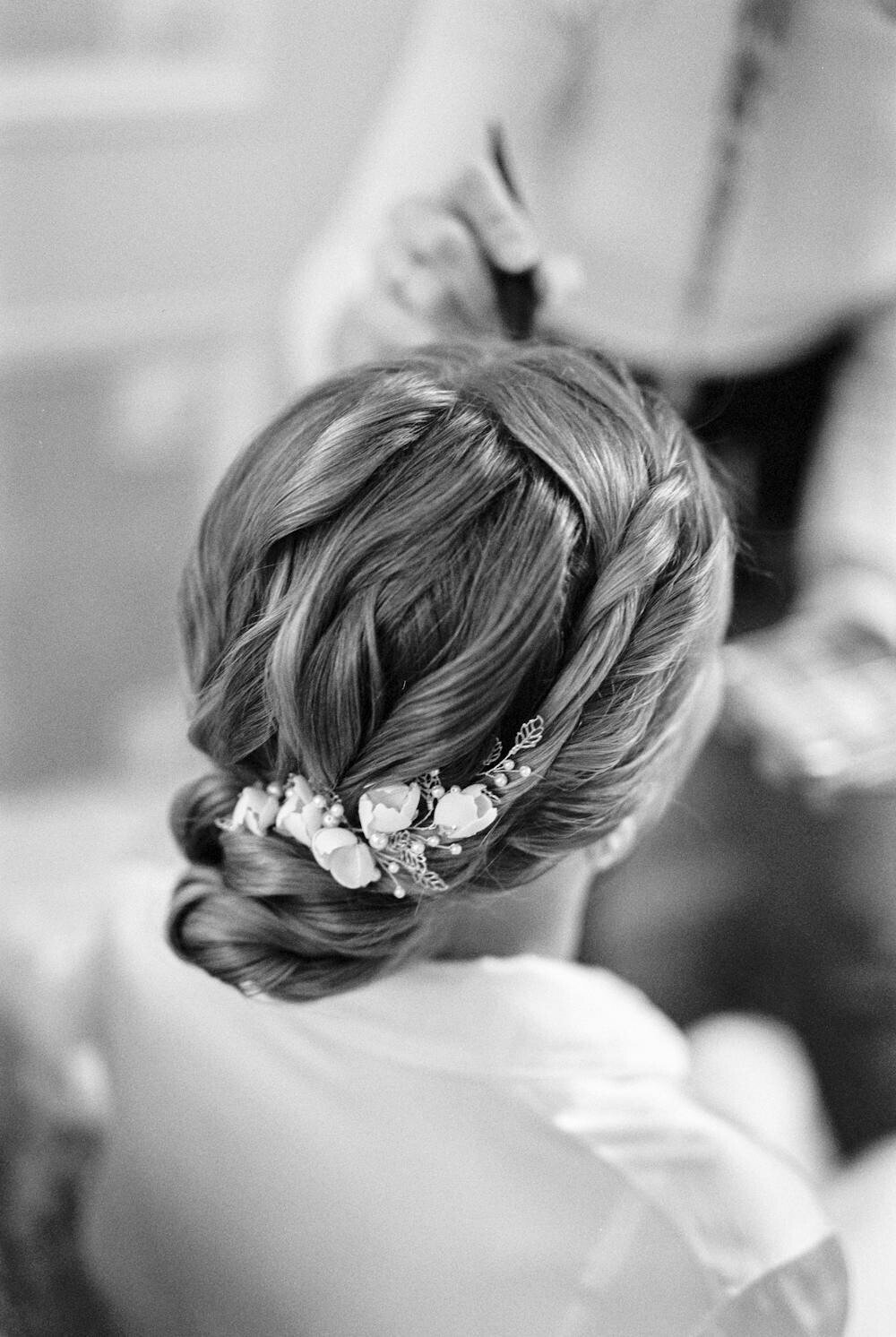 The flower-adorned bun is nature-inspired and beautiful. It brings a fresh, romantic feel. This style is perfect for outdoor ceremonies. Use seasonal flowers for a personal touch. It’s ideal for spring or summer weddings. DIY with fresh or faux flowers keeps costs down.