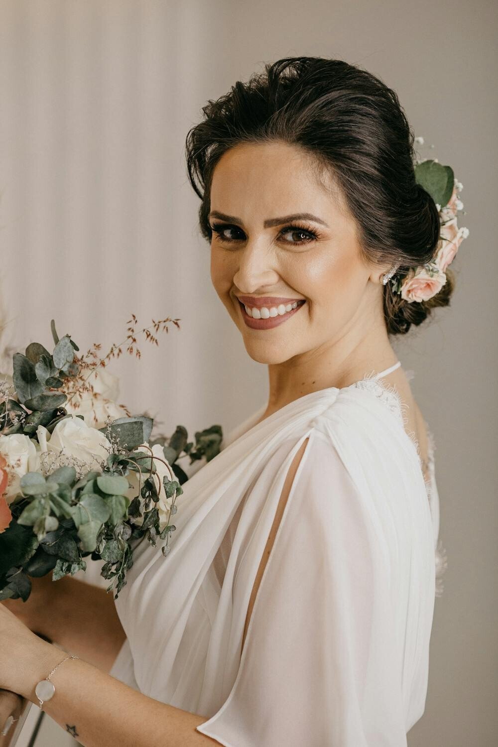 The Grecian-inspired updo is ethereal and elegant. It channels ancient beauty. This style is perfect for flowing gowns. Enhance with a laurel headband or gold pins. It’s suitable for destination or themed weddings. Salon styling ensures a goddess-like finish.