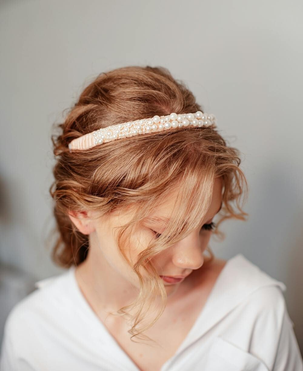 The elegant ponytail updo is sleek and modern. It’s perfect for brides who want something unique. This style keeps hair off the face with style. Add a silk ribbon for a chic touch. It’s suitable for contemporary or minimalist weddings. DIY-friendly, making it budget-conscious.