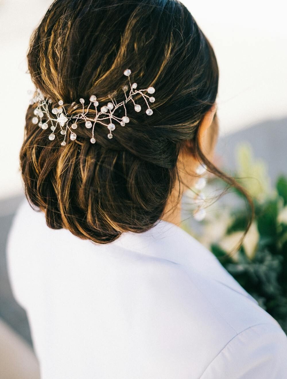 The messy bun with loose strands is chic yet relaxed. It’s perfect for a laid-back bride. This style creates a carefree, boho look. Enhance it with a headpiece or floral clips. It works well for rustic or beach weddings. DIY is easy and wallet-friendly.