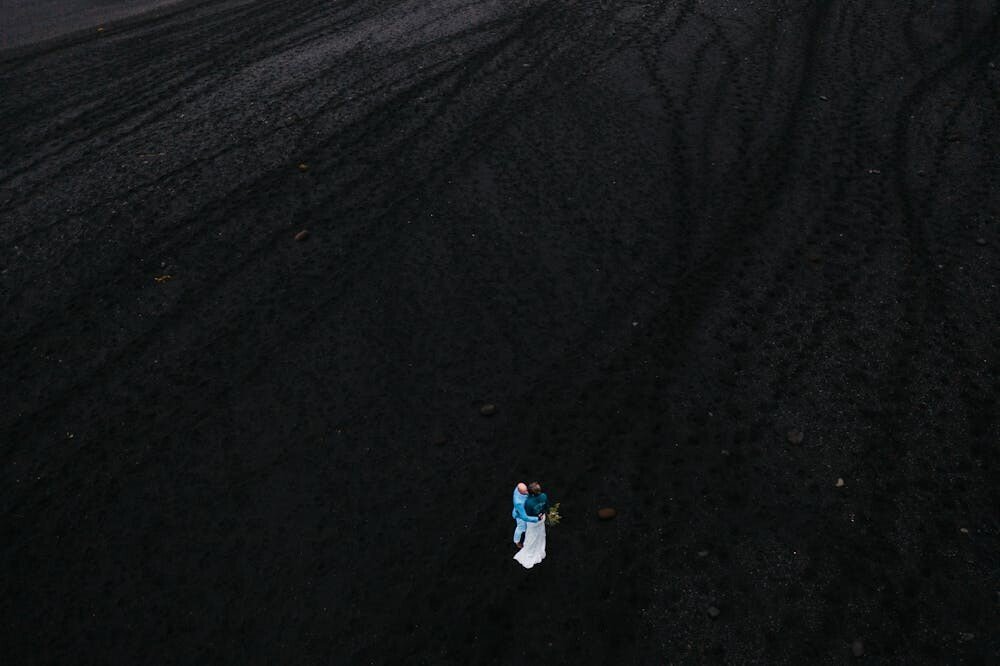 Capture the excitement of your getaway with a dramatic drone shot. It shows the start of your life together from a new angle.