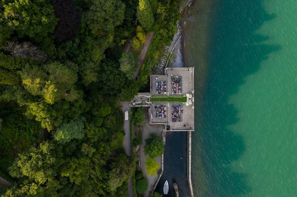 Capture the full beauty of your ceremony setup with an aerial shot. It highlights the details and layout in a way that’s truly breathtaking.