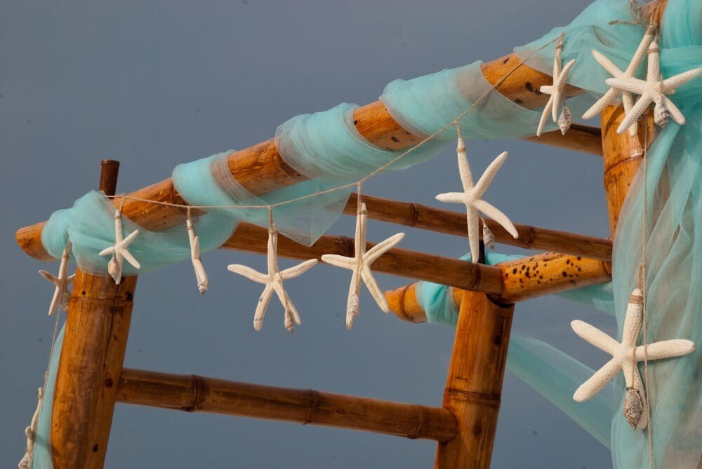 Combine different tropical flowers for a lively, festive look. Personalize with accents like seashells or driftwood for added flair.