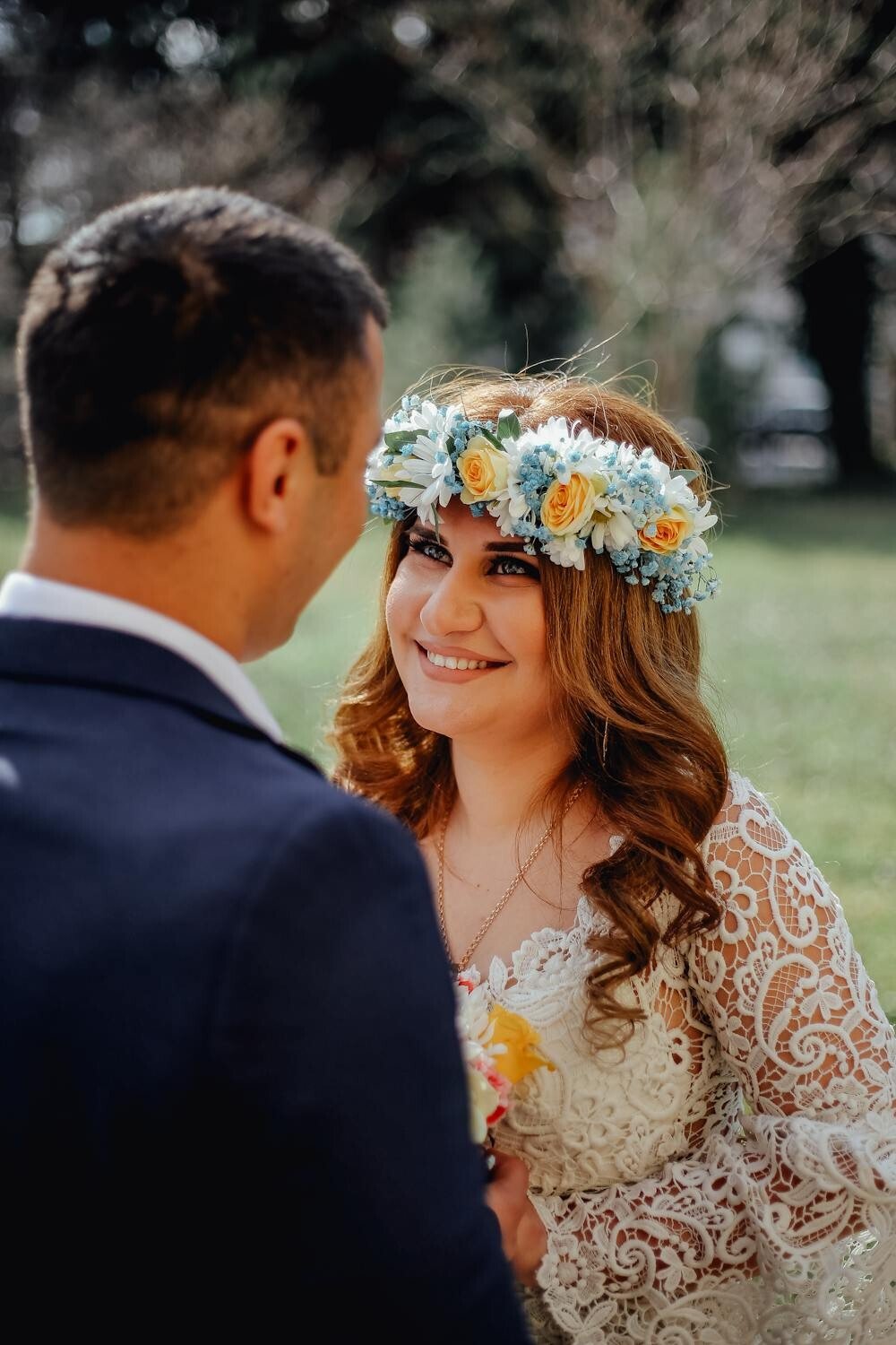 Personalize it by adding smaller yellow blooms or wheat. These crowns pair well with rustic or country-themed weddings.