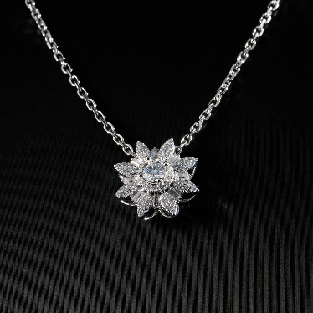 The gardenia grace pendant captures the essence of purity and sophistication. Its delicate design adds a touch of timeless beauty to any look.