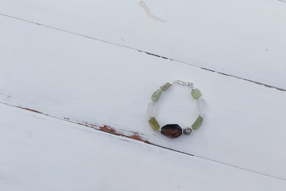Jade paired with silver creates a harmonious blend of cool tones. The silver adds a modern edge to the traditional jade.
