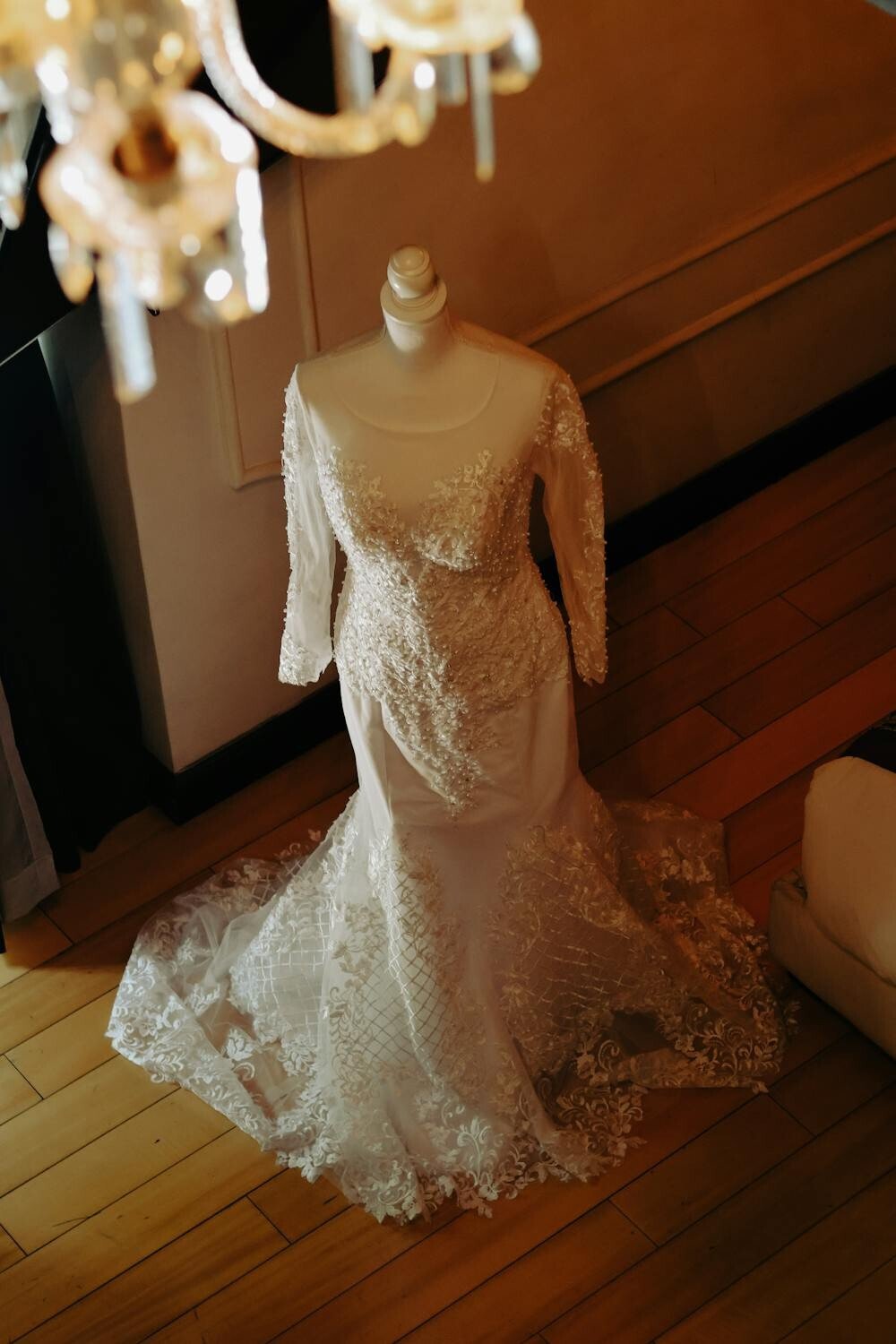 Beaded mermaid gowns add sparkle and texture to your wedding look. They create a luxurious and glamorous effect.
