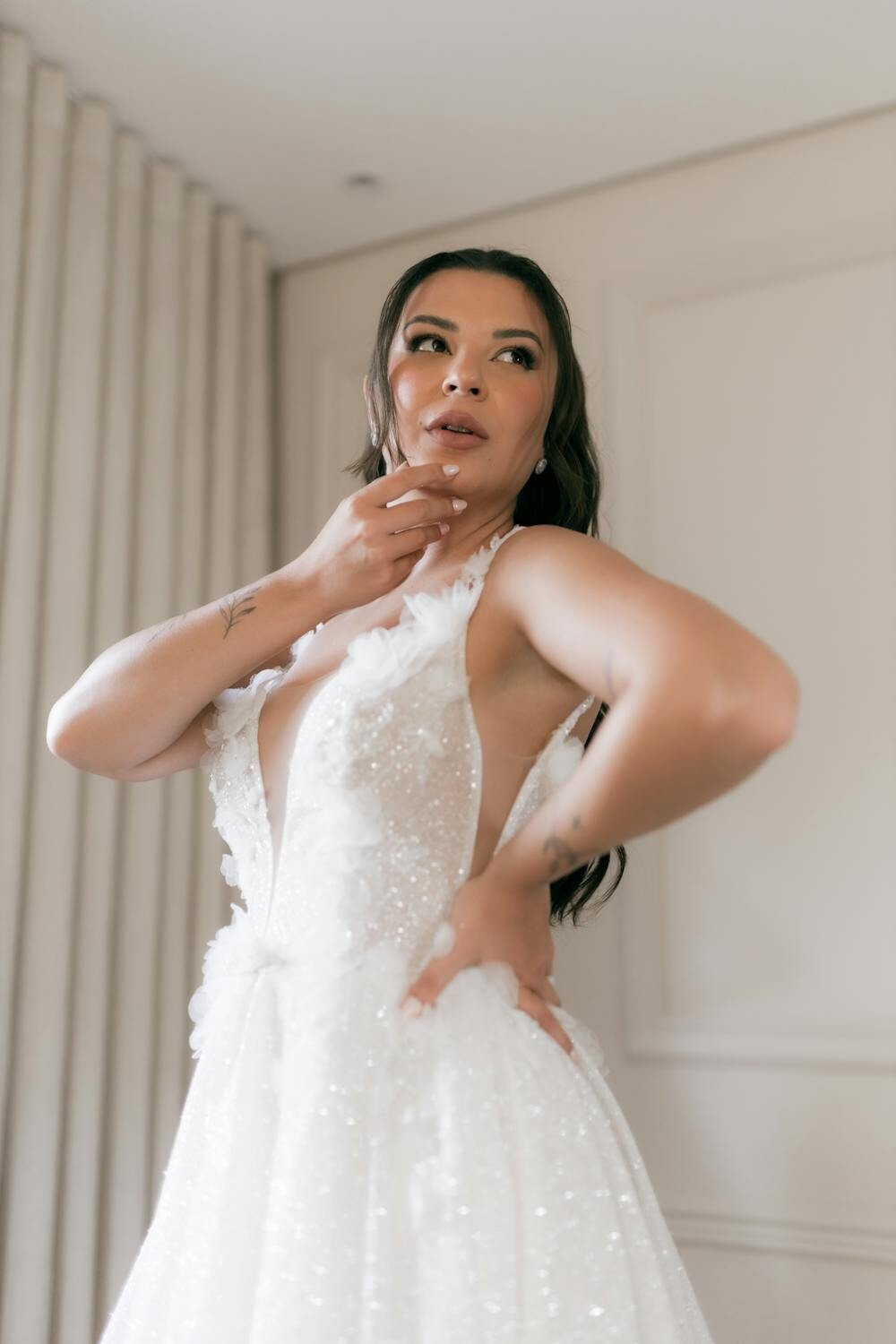 This style is perfect for brides who want a sophisticated yet daring look. It offers the best of both worlds with coverage and style.