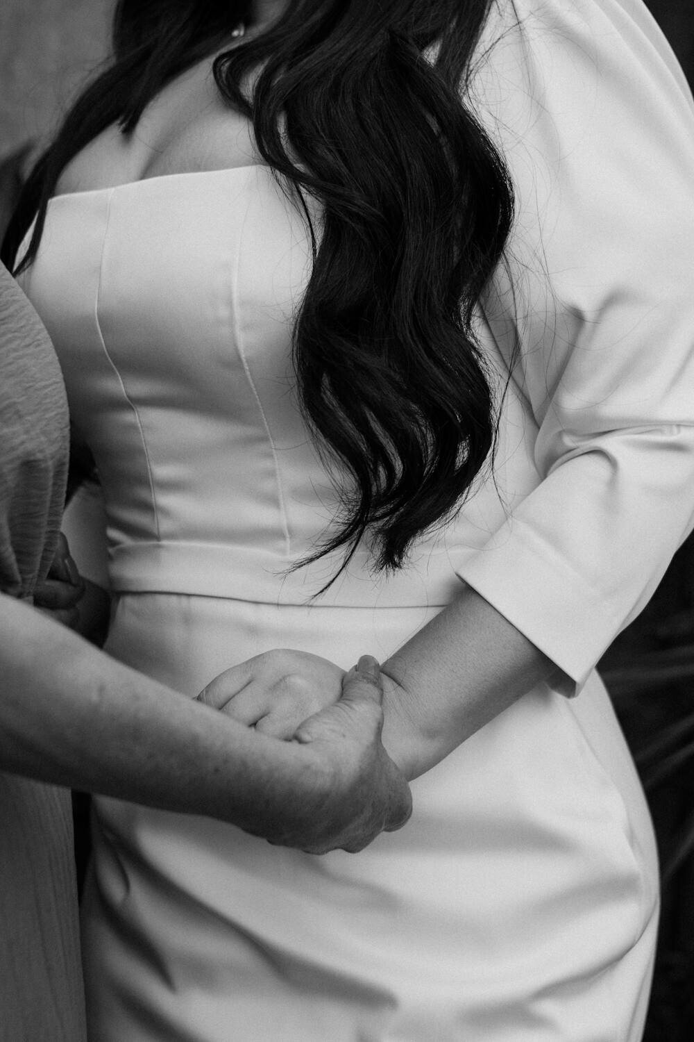These sleeves pair well with simple, elegant gowns. A sleek ponytail or bun complements the look.