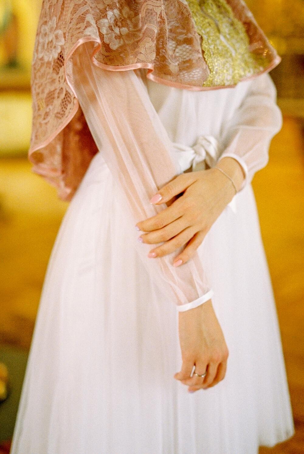 Brides love the way sheer fabric feels light and airy. It provides coverage without hiding the arms completely.