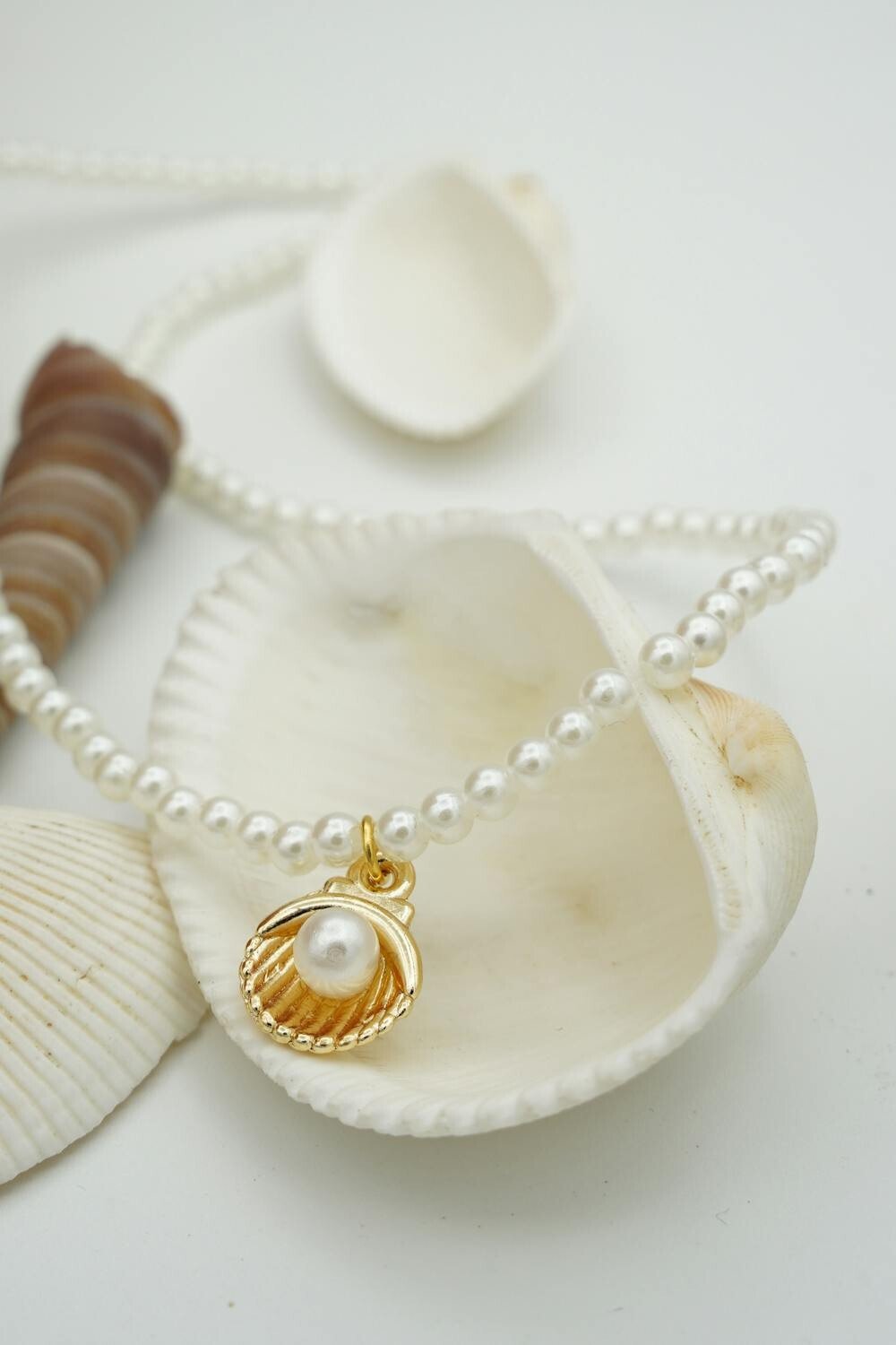 The uniqueness lies in the elegant pairing of shells and pearls. It’s both sophisticated and playful, ideal for any occasion. Pair it with a little black dress for a classic look.