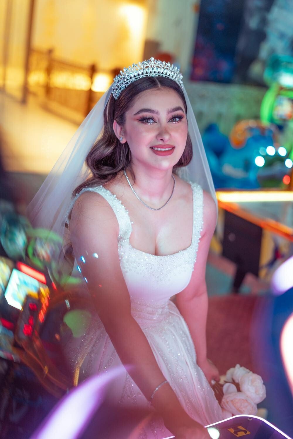 A tiara with a veil adds a romantic flourish to your big day. It’s perfect for brides who want to embrace tradition.