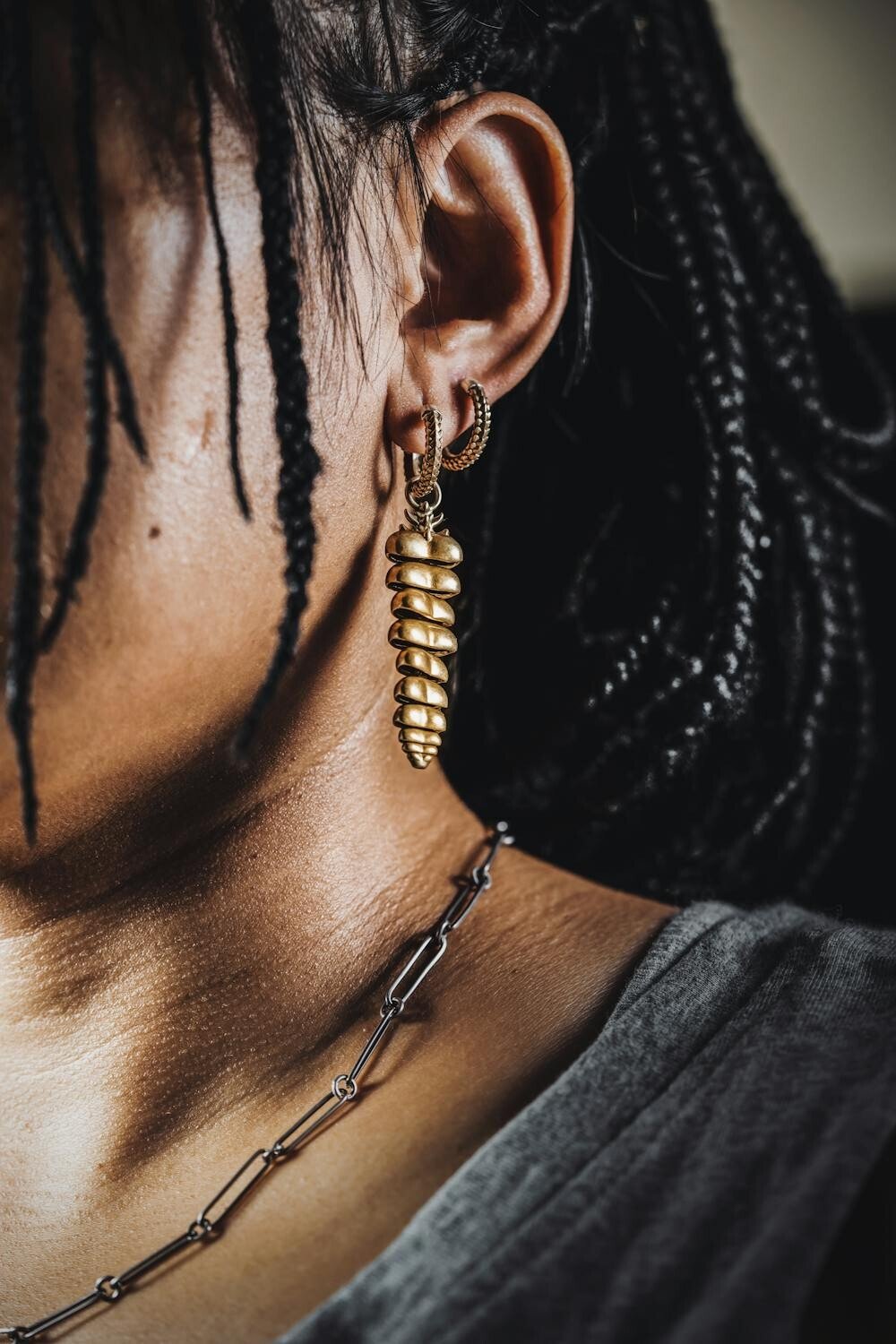 Chain tassel earrings are edgy and modern. They combine the fluidity of tassels with the strength of metal. The shiny chains catch the light in a dazzling display. They add a fierce touch to any ensemble.